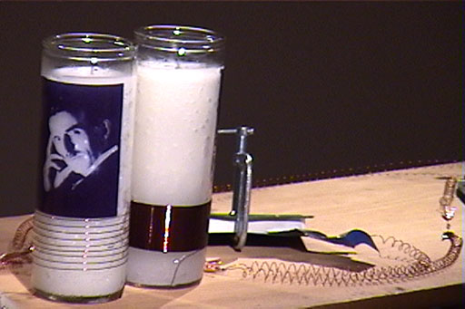 Four Foxhole Radios (2000) A series of working radios constructed from unlikely materials such as chewing gum wrappers, broken light bulbs and rusty nails offers proof of technology in its absence.